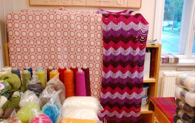 ... så många lockande färger... vill ha, vill ha, men ack så förnuftig jag var, finns ju redan här hemma två stora svarta plastsäckar fulla med mattväft...