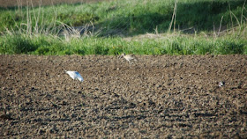 Han sprättar fortfarande omkring på marken, trots att jag varnat för blodtörstiga rovdjur, som smyger omkring här på vår gårdsplan. Och hur vet jag att det är en han? Nå, förstås för att han är obstinat! :)